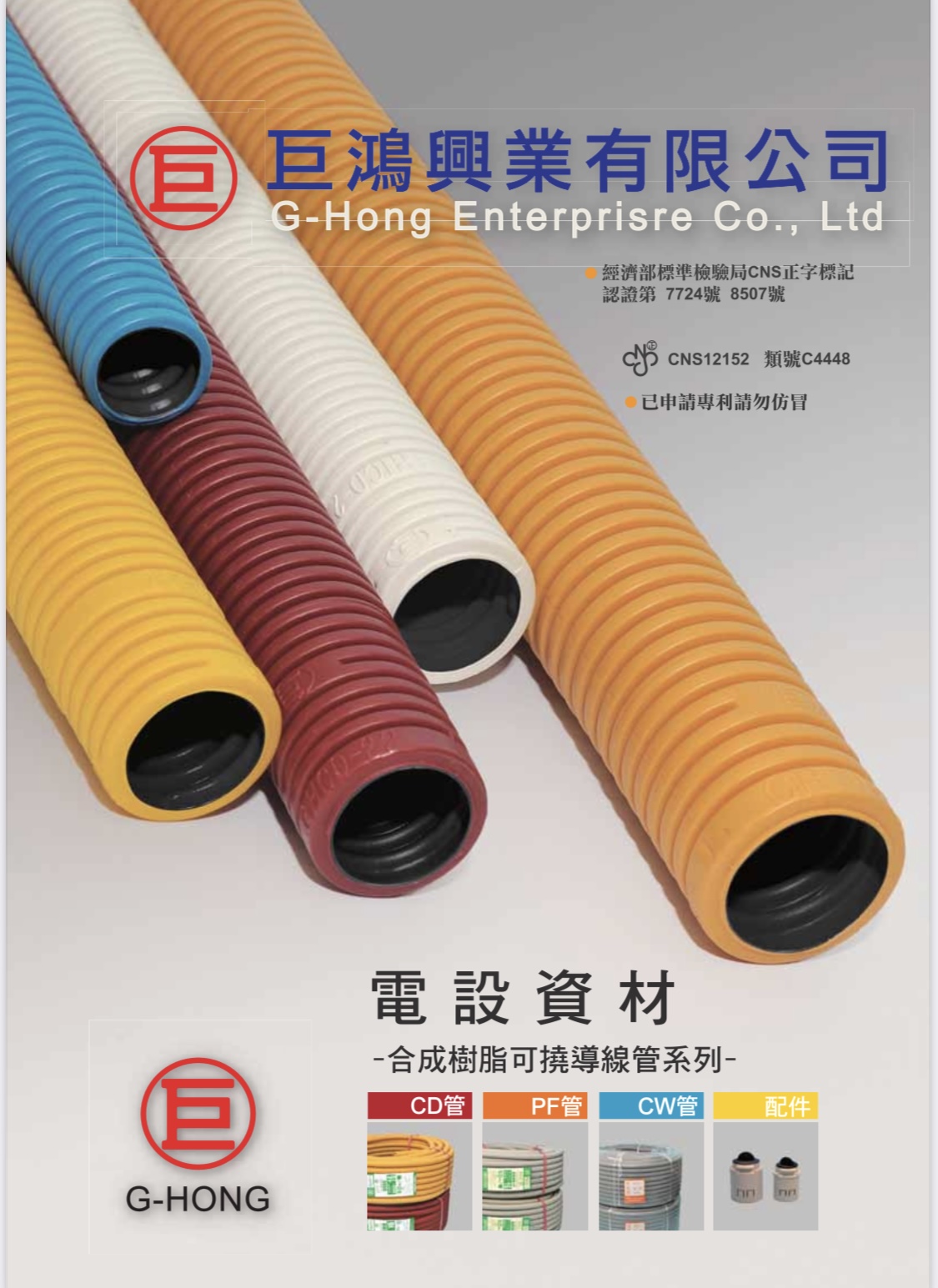 巨鴻 CD 管(混凝土埋設專用可繞性配電導管),符合 CNS 12152、C4448 國家標準, 專為混凝土埋設施工設計,具備優異彎曲性,施工快速省工。 可提供送審目錄,適合工程發包與監造使用。